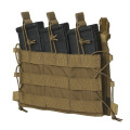 The Guardian Flap is a modular front flap designed for the Guardian Plate Carrier, allowing for the storage of three rifle magazines. The flap attaches to the vest via two buckles and hook & loop fasteners. The built-in pocket is divided into three sections, each designed to accommodate a single magazine for AR, AK47, and AK74 systems. Magazines are secured from the top with a shock cord featuring non-slip grips. The flap surface includes a MOLLE/PALS compatible modular system (6 columns in 3 rows). Additional loops on the sides of the flap are interwoven with a shock cord for carrying extra gear. Anti-slip grips are sewn into the bottom corners of the flap for easy detachment.